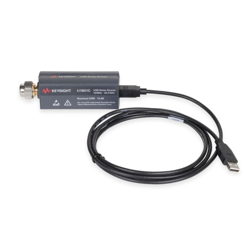 U1831C 是一款多功能 USB 供电智能噪声源。 USB 连接可以显著缩短设置时间,并且它还能与噪声系数分析仪、信号分析仪和网络分析仪保持兼容。 此宽带噪声源可以测量从 10 MHz 到 26.5 GHz 的噪声系数。