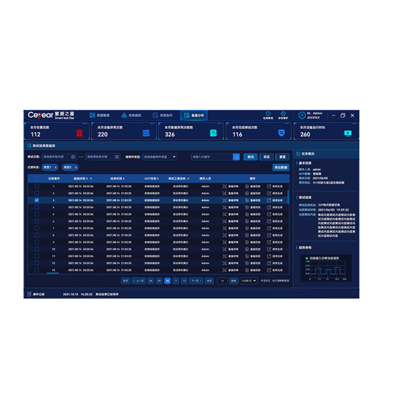 实现试验测试过程动态图形化引导操作、多类型参数并行监测、数据处理及曲线显示、智能化异常告警;实现100MHz-60GHz全频段覆盖,同时可兼顾热真空、耐功率、低气压放电、功率线性度与无源互调检测