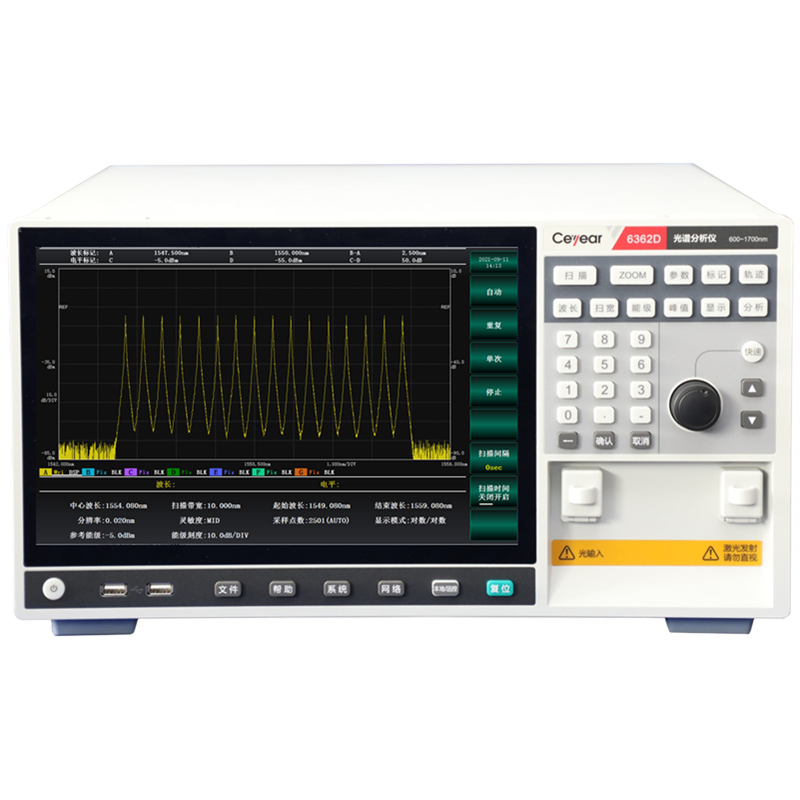 产品简介: 6362D光谱分析仪(简称:光谱仪)是一款高分辨、大动态高速高性能光谱分析仪,适用于600~1700nm光谱范围的DWDM、光放大器等光系统测试; LED、FP-LD、DFB-LD、光收发器等光有源器...