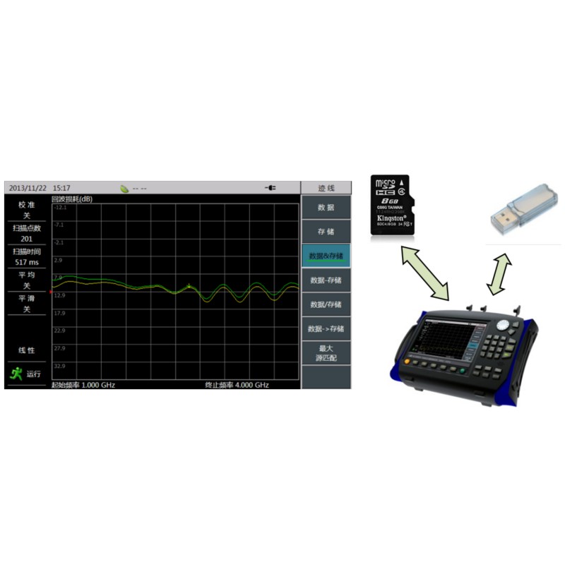 对测量迹线或状态进行存储,存储介质可选择仪器内部FLASH存储器、SD卡、USB设备。